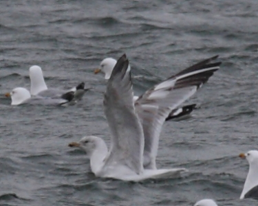 I visited this afternoon and saw the adult male Greater Scaup Aythya marila off the Spillway, where I got some pictures, but missed the Common Sandpiper Actitis hypoleucos. It was pretty wild at the Top (east) End and it was hard work going through the wildfowl. I hope the wind dies down a bit for the WeBS Count tomorrow. When I checked the gulls I didn’t see any unusual species, but there was an aberrant 3rd or 4th-winter Herring Gull Larus argentatus that I photographed.