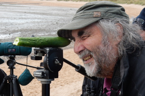 We birded a few gardens within a mile of the house before giving up and going to the island store for some provisions – it was closed for a half-day! We saw a Yellow-browed Warbler, a number of Goldcrests scratching around on garden lawns, and a pair of Blackcaps. Mark Ponsford, Jack Willmott and Pete Massey, who are here with us, spent even less time in the field. We hope for better tomorrow, when the rain stops. Pete (Sid) brought his new scope, pictured here at the Ythan Estuary on the way up – he couldn’t see anything, so we pointed out he still had the lens cap on! To be fair he hasn’t seen anything since then either.