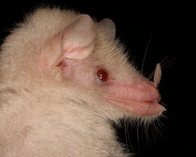 Albino Geoffroy’s Hairy-legged Bat, Tamana Hill Cave, Trinidad © Nigel Milbourne 2013