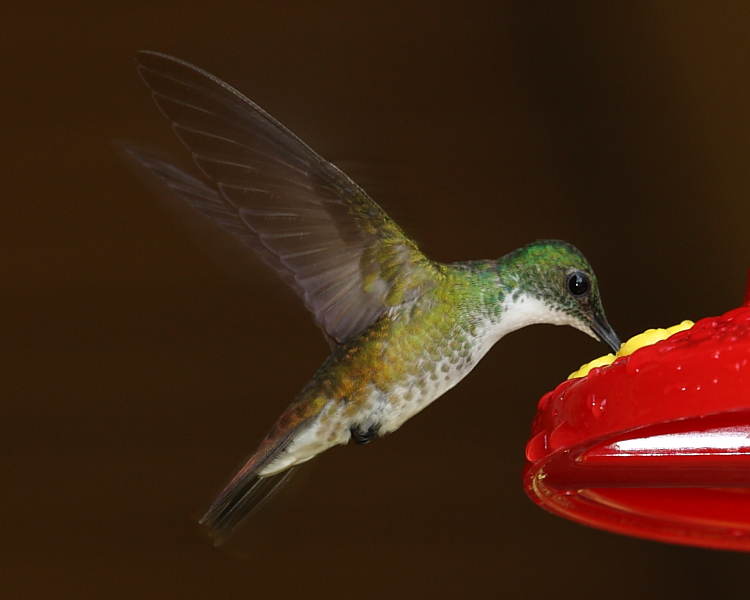 Today, we had a look around the gardens of Hacienda Jacana where we’ve been staying. We saw the Great Fruit-eating Bat Artibeus lituratus hanging in a palm leaf tent and then I spent some time photographing hummingbirds visiting the feeders put up by our hosts outside their house. During our final lunch as a group, we saw a Yellow Warbler, Violaceous Euphonia, Green Kingfisher and a Tufted Coquette from the balcony. Then we took the bulk of the group to the airport and Daniel, Adrian and myself came back to Port of Spain.