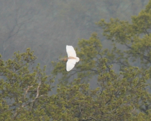 There was no sign of the Black-necked Grebes Podiceps nigricollis this afternoon unfortunately, but there were lots of fishing boats in front of the Lodge. Rather surprisingly though, we had 4 Northern Wheatears Oenanthe oenanthe along the south side. There were 2 males and a female at Bell’s Bush and a male at Holt Bay.  Thanks to Andy Davis and Mike Jenkins for the call about the Squacco Heron Ardeola ralloides at Chew Valley Lake. A real cracker that drew lots of admirers early this evening. Here’s a hand-held grab shot taken when it flew up briefly over the back corner of Herriott’s Pool at 1715 hrs – just about identifiable!