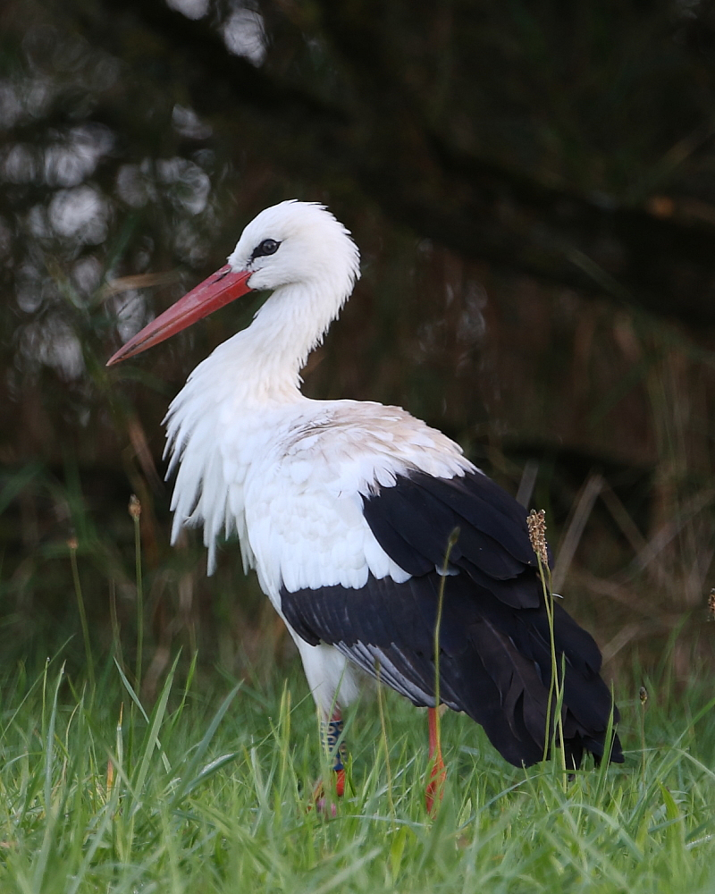 Mark and I had managed a few shots in the failing light, and it appears that it had a ring on the left leg, one of which had GB58 inscribed on it. So, it appears to be one of the birds released from the rewilding scheme at the Knepp Estate in Sussex. I’m leading a walk for Bristol Ornithological Club in the morning, so let’s hope the Stork sticks around long enough for them to see it too.