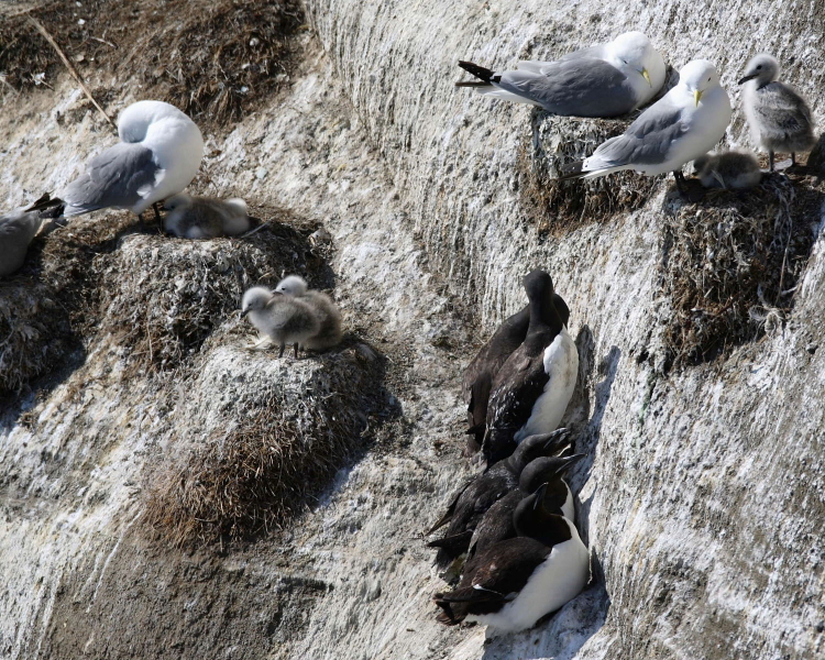 Great Northern Diver 6, 6, Red-throated Diver 6, 50, Slavonian Grebe 5, 30, Northern Fulmar 10, 500, Manx Shearwater 1, 4, Northern Gannet 6, 50, Great Cormorant 7, 30, Shag 3, 10, Whooper Swan 7, 440, Pink-footed Goose 2, 100, Greylag Goose 9, 300, Common Shelduck 1, 280, Eurasian Wigeon 5, 50, Gadwall 2, 20, Teal 3, 10, Mallard 9, 10, Pintail 1, 3, Shoveler 1, 5, Tufted Duck 10, 3000, Greater Scaup 5, 500, Common Eider 9, 4000, King Eider 1,1, Steller’s Eider 1, 1, Harlequin Duck 5, 20, Long-tailed Duck 2, 50, Common Scoter 2, 50, Barrow’s Goldeneye 2, 600, Common Goldeneye 1,1, Red-breasted Merganser 9, 20, White-tailed Eagle 2, 4, Gyr Falcon 2, 3, Merlin 5, 4, Rock Ptarmigan 2, 10, Oystercatcher 9, 30, Ringed Plover 9, 20, Golden Plover 9, 30, Dunlin 9, 100, Red Knot 3, 160, Sanderling 1, 45, Purple Sandpiper 5, 10, Common Snipe 10, 20, Icelandic Black-tailed Godwit 6, 30, Whimbrel 9, 50, Redshank 10, 100, Ruddy Turnstone 2, 5, Red-necked Phalarope 9, 300, Grey Phalarope 1, 2, Arctic Skua 9, 20, Long-tailed Skua 1, 3, Great Skua 2, 3, Black-headed Gull 10, 100, Common Gull 4, 30, Ring-billed Gull 1, 1, Lesser Black-backed Gull 10, 100, Herring Gull 8, 20, Iceland Gull 3, 4, Glaucous Gull 8, 200, Great Black-backed Gull 9, 200, Little Gull 2, 1, Kittiwake 10, 1000, Arctic Tern 10, 1000, Auk sp. 4, 10000, Razorbill 5, 50, Brunnich’s Guillemot 3, 50, Common Guillemot 5, 1000, Black Guillemot 7, 20, Puffin 6, 250, Snowy Owl 1,1 Meadow Pipit 10, 50, White Wagtail 10, 10, Wren 1, 1 (heard), Northern Wheatear 5, 3, Blackbird 1, 3, Redwing 10, 50, Goldcrest 1, 2, Raven 9, 10, Starling 5, 30, Icelandic Common Redpoll 5, 20, Siskin 1, 3, Snow Bunting 6, 3. (79 spp.)